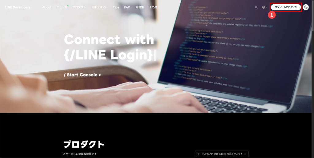 LINE Developersサイトにアクセスしてログインをします。