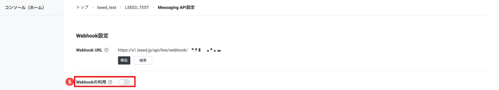 LSEED>設定>LINE>Msessaging APIに戻ります。