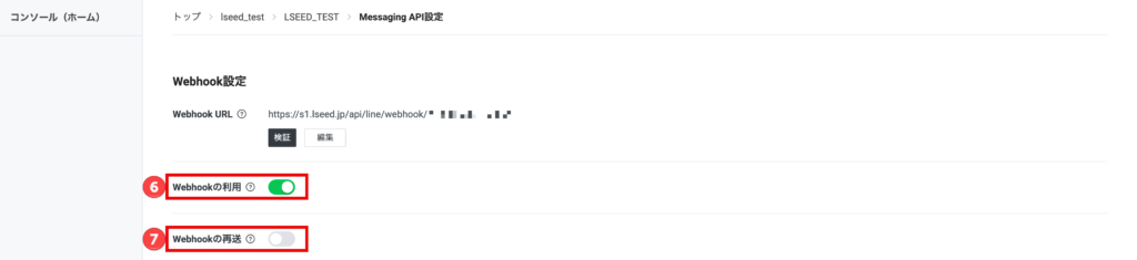 ⑥ 「Webhookの利用」がオンになっていることを確認します