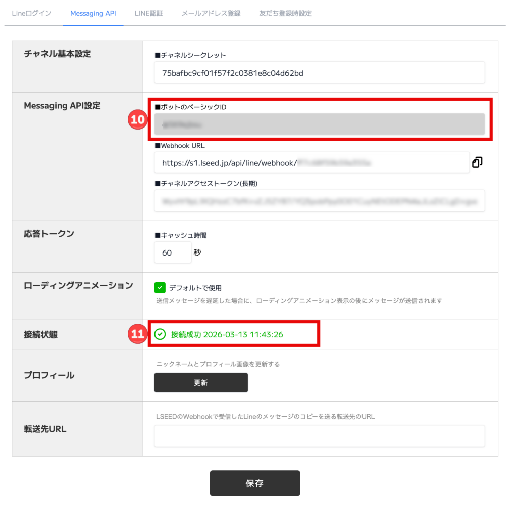 これでLINE公式とLSEEDの基本連携設定は完了となります。