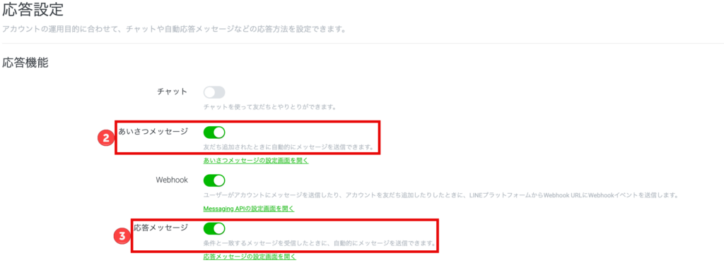 LINE Official Account Maneger >応答設定のページが開きます。