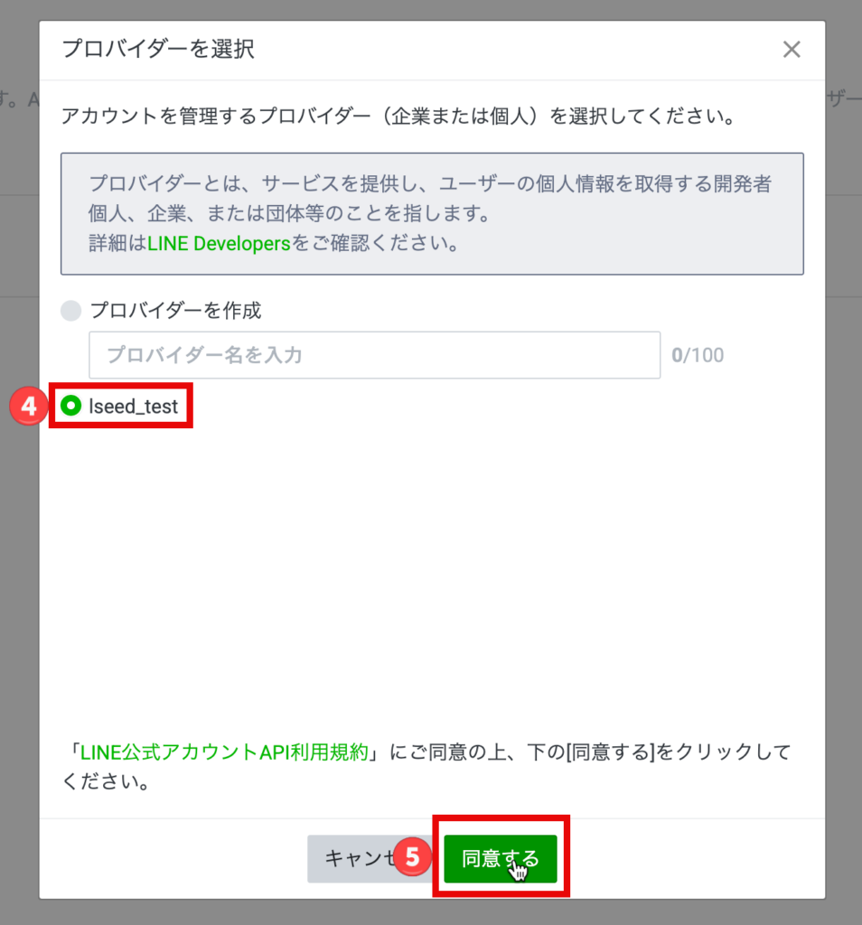 LSEEDとMessagingAPI双方を連携させます。