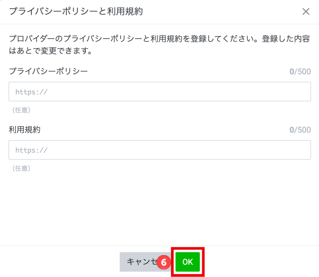 ⑥「プライバシーポリシー」および「利用規約」がある方はこちらで登録してください。
