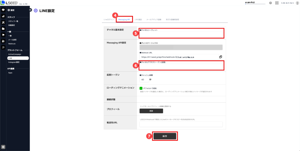 LSEEDとMessagingAPI設定を連携します。