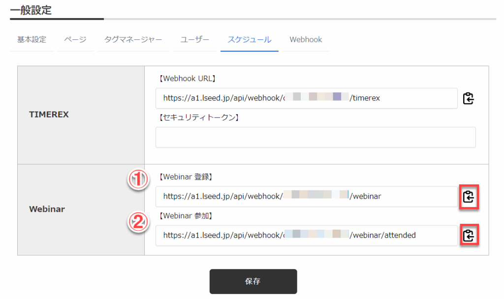 - 「新規登録」にLSEED.からコピーした【Webinar 登録】をペーストします。