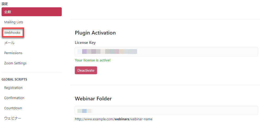 - サービスID ・・・・WebinarPressが発行しているWebinarのIDが表示されています。