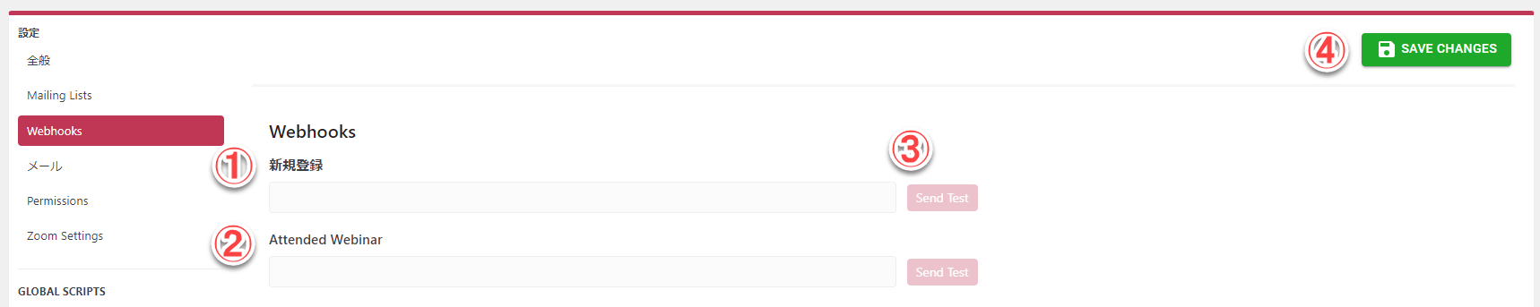 - 「新規登録」「Attended Webinar」それぞれの[Send Test]をクリックします。(Data sent to the Webhook!と表示されます)