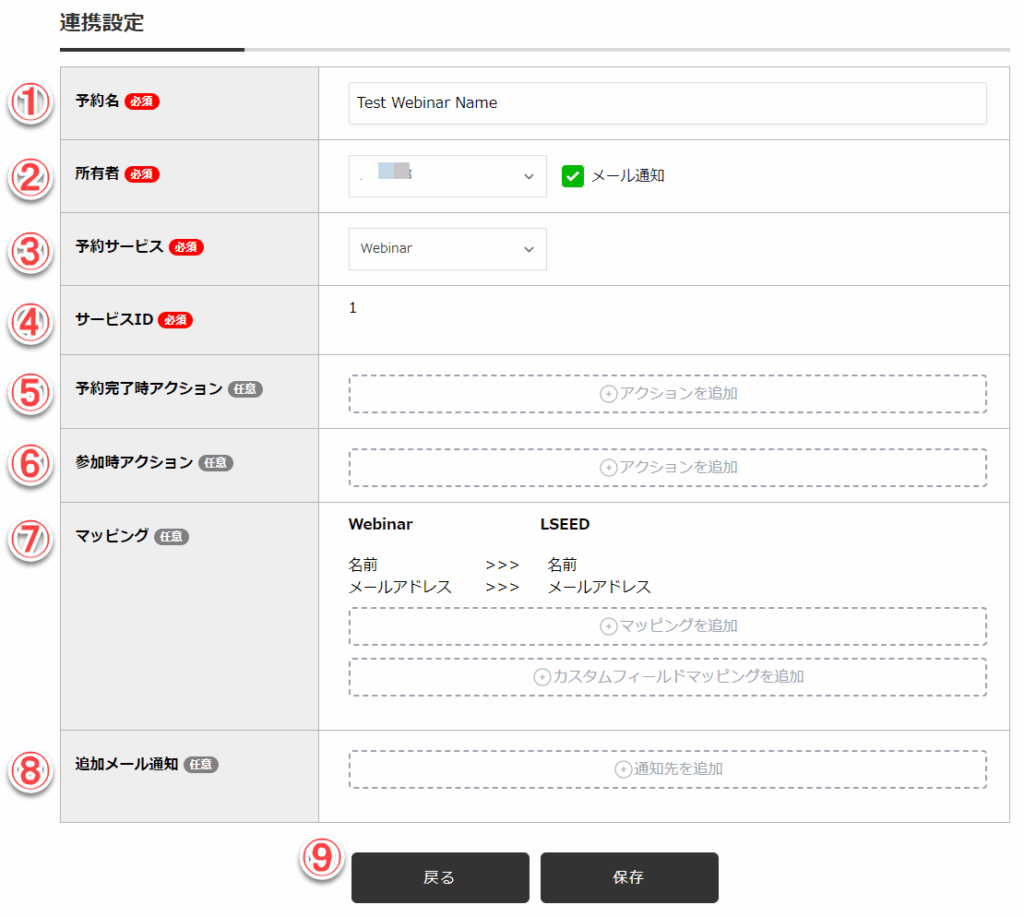 - 予約名 ・・・・初期値はウェビナータイトルになっています。